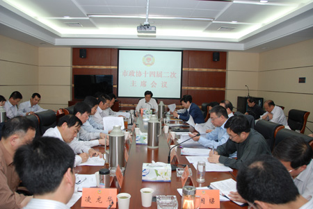 4月23日,市政协召开十四届二次主席(扩大)会议。市政协主席钱能主持会议,市政协领导鲍玉荣、钱鹤林、倪福明、徐根麟、吴卫中、沈向东、殷小荣、吴学明,秘书长薛群峰出席了会议。