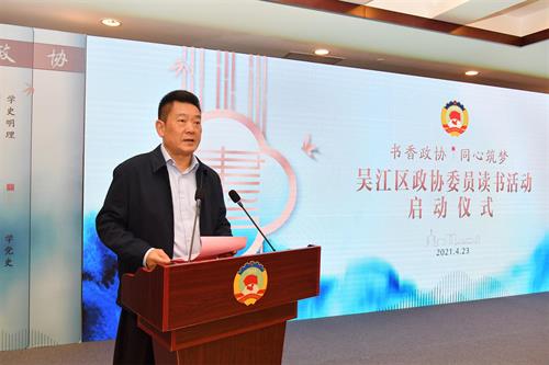 4月23日上午,在第26个“世界读书日”,区政协举行“书香政协·同心筑梦”委员读书活动启动仪式暨委员大讲堂活动。区政协党组书记、主席李斌出席并讲话,区政协党组成员、副主席沈震松主持启动仪式。