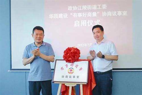7月4日,江陵街道企业“有事好商量”协商议事室启用仪式在江苏华顶建设工程股份有限公司举行,进一步推动政协协商与基层协商有效衔接。区政协主席李斌出席活动并讲话。