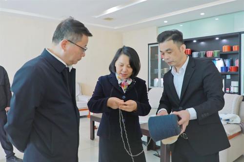 曹雪娟一行首先来到苏州市鼎智新材料科技有限公司,与区政协委员、公司执行董事翁清爽展开座谈交流,详细了解企业运营情况及生产工艺流程。鼎智新材料是一家从事GRS再生纤维高端纺织新材料生产及销售的企业,曹雪娟鼓励企业坚定发展信心,加强自主研发能力,保持工匠精神,不断在技术上创新突破,提升企业核心竞争力。