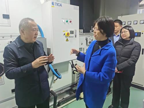 在苏州苏震生物工程有限公司,王玉英一行参观了企业生产作业车间,认真听取了张赟委员关于公司产业方向、产品应用、主营项目、企业愿景等方面的介绍,对企业聚焦智能制造领域大胆探索所彰显的责任担当和所取得的实践成果表示充分肯定。